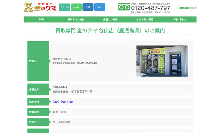 | 特徴 | 鹿児島県内に5店舗(鹿児島市に3店舗、鹿屋市に1店舗、霧島市に1店舗)を持ち、多岐にわたるジャンルの買取品目を誇る店舗です。店名の通り、買取だけでなく質預かりにも対応しています。 |
